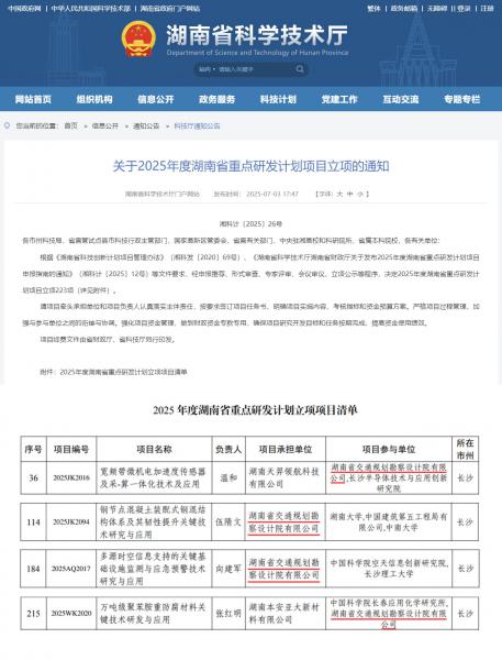 湖南交通設計院四項創新項目獲湖南省重點研發計劃立項
